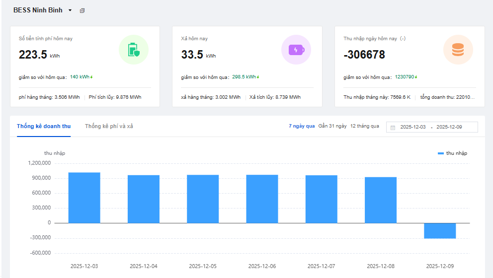 Kết quả: Hệ thống vận hành ổn định, giúp khách sạn tiết kiệm trung bình 1 triệu đồng/ngày (khoảng 30 triệu/tháng) chỉ nhờ vào việc chênh lệch giá điện (Peak Shaving), chưa kể lợi ích từ việc thay thế máy phát điện dự phòng.